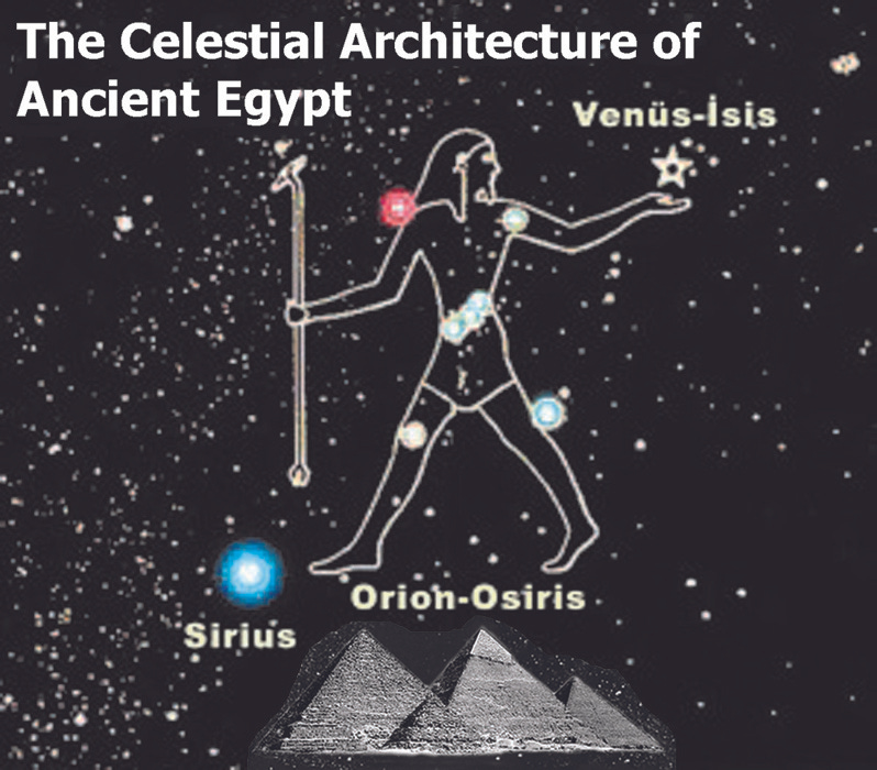 For the ancient Egyptians the constellation of Orion was also associated with the god Osiris, the Lord of the Underworld and of rebirth. The concept of death and rebirth was for the Egyptians a common occurrence, which played out in the very geography of the Nile Valley. For each year the Nile would flood bringing with it rich and fertile soil that was essential for agriculture. The time of the flooding of the Nile also coincided with the reappearance of the constellation Orion, which had been out of sight for 70 days. Thus with the annual flooding of the Nile, Osiris was reborn. To the left of Orion is the star Sirius associated with the goddess Isis, the consort of Osiris. Isis followed Osiris across the sky. There they ruled the heavenly kingdom. They ruled the night, for theirs is the kingdom of the dead.